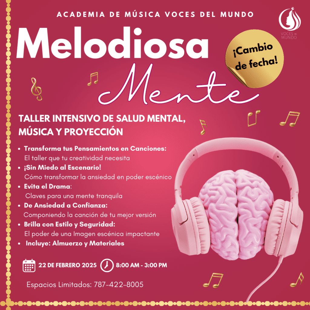 a academia de música Voces del Mundo, bajo la dirección de la reconocida cantautora puertorriqueña Yireh Pizarro, semifinalista de la primera temporada de La Voz U.S., presenta con entusiasmo “Melodiosa Mente”, un taller diseñado para jóvenes de 12 años en adelante que une la música, el bienestar emocional y la proyección escénica en una experiencia transformadora. El evento, originalmente […]
