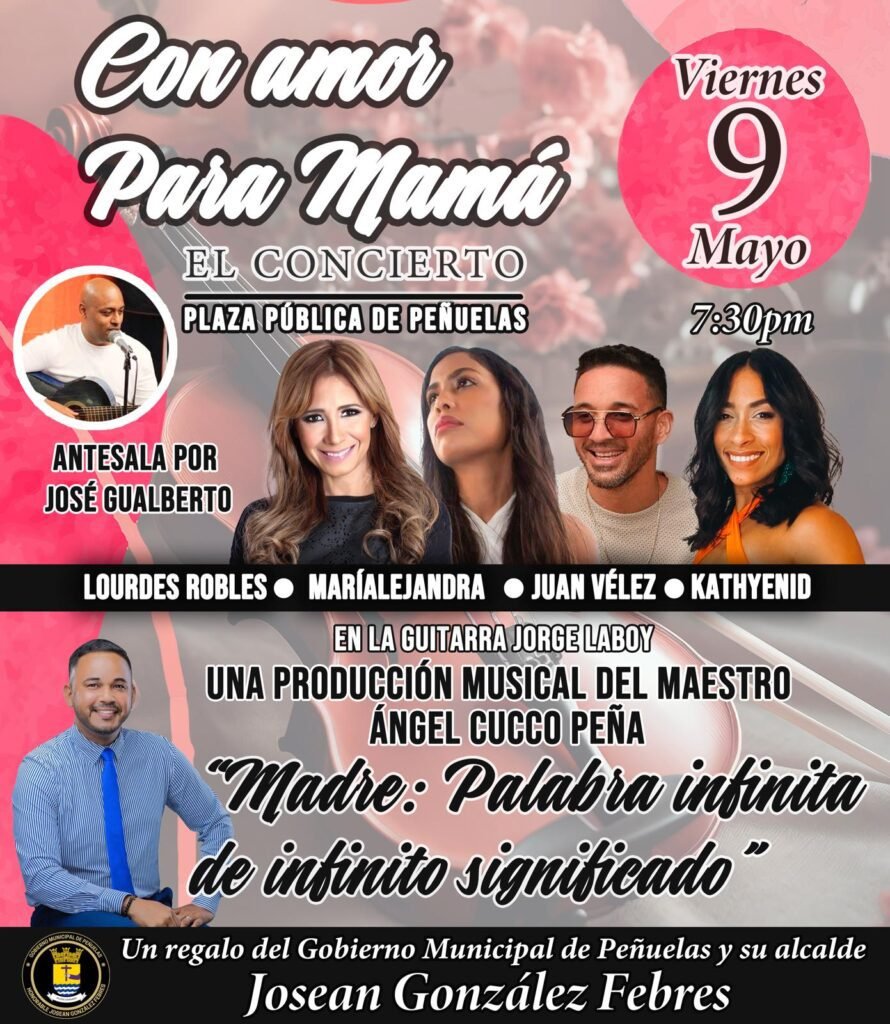 Como un regalo a las madres en su fin de semana, el municipio de Peñuelas presenta este viernes 9 de mayo, a partir de las 7 de la noche en la plaza pública de este pueblo el concierto, Con Amor para Mamá. Así lo dio a conocer el alcalde, Josean González Febres, quien ofreció detalles […]