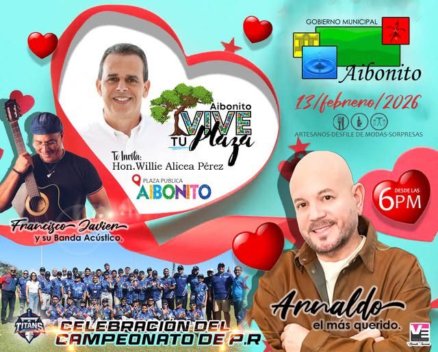 Aibonito se prepara para una noche de celebración, música y orgullo de pueblo. Este viernes, 13 de febrero, desde las 6:00 p.m., la Plaza Pública será el escenario de un evento muy especial dedicado al Día del Amor y la Amistad, mientras el pueblo se une para festejar el Campeonato de Puerto Rico de nuestros Aibonito Titans de la Liga […]