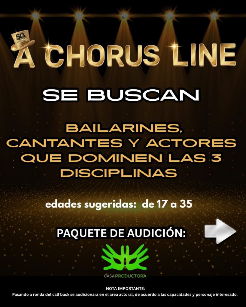 Casa productora anuncia audiciones para el musical Chorus Line