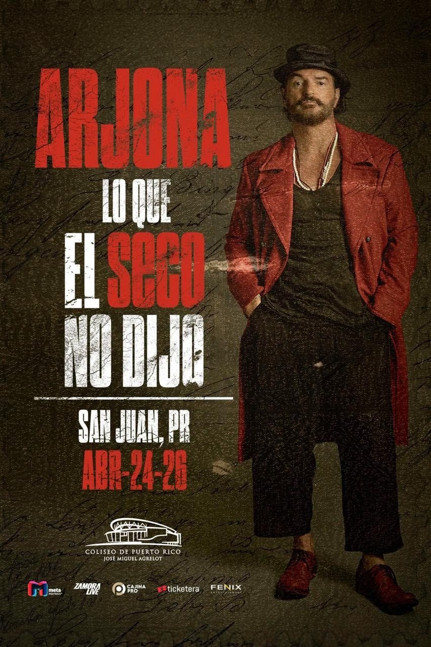 El cantautor Ricardo Arjona regresa a Puerto Rico con un esperado concierto en el Coliseo de Puerto Rico, el próximo 24 de abril de 2026 como parte de su nueva y ambiciosa gira internacional “Lo Que el Seco No Dijo Tour”.