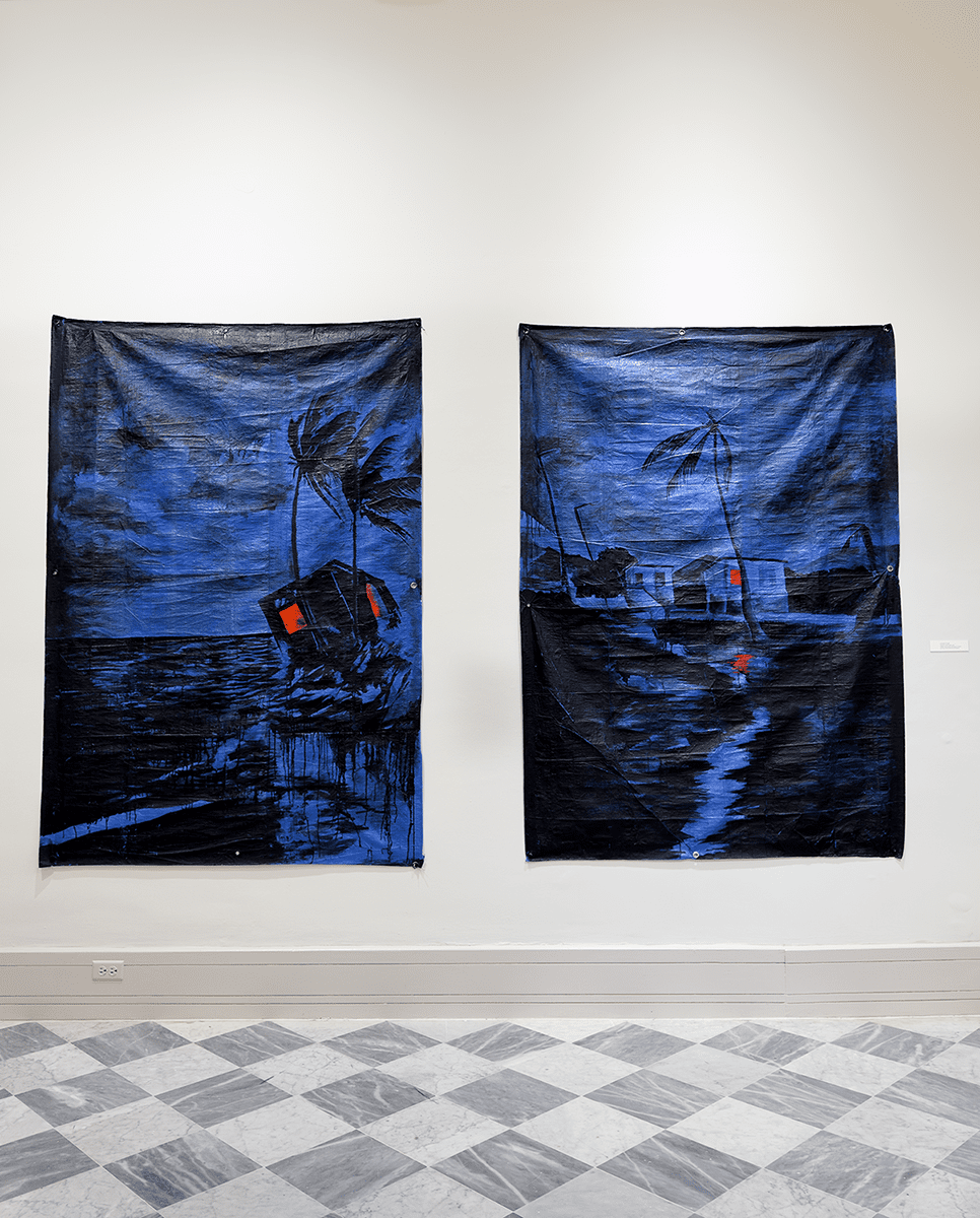 “Comencé la serie Flood Aftermath and Other Hurricane Stories en 2015, con cuatro pinturas sobre lonas azules, y ahora la serie cuenta con ocho piezas. Hasta hoy, han sido vistas en múltiples museos e instituciones y tienen un gran historial de exposiciones, generando conversaciones sobre el clima y cómo estos eventos nos afectan a todos”, dijo Cruet.
