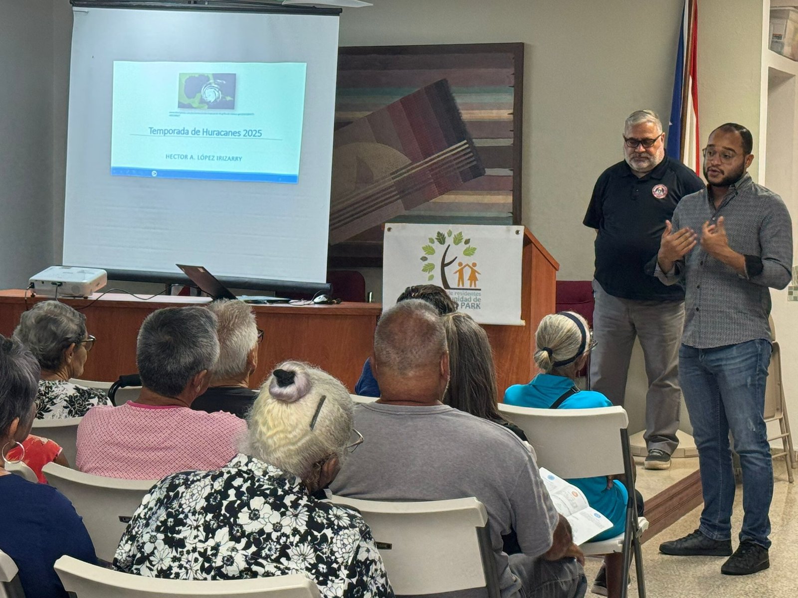 Este encuentro cobró vital importancia al realizarse en plena temporada de huracanes, con el propósito de orientar y capacitar a los residentes sobre cómo prepararse ante posibles emergencias y eventos catastróficos. El Sr. López ofreció información crucial sobre los servicios y cursos que ofrece el Municipio, orientados a fortalecer la capacidad de respuesta de las comunidades en situaciones de riesgo.
