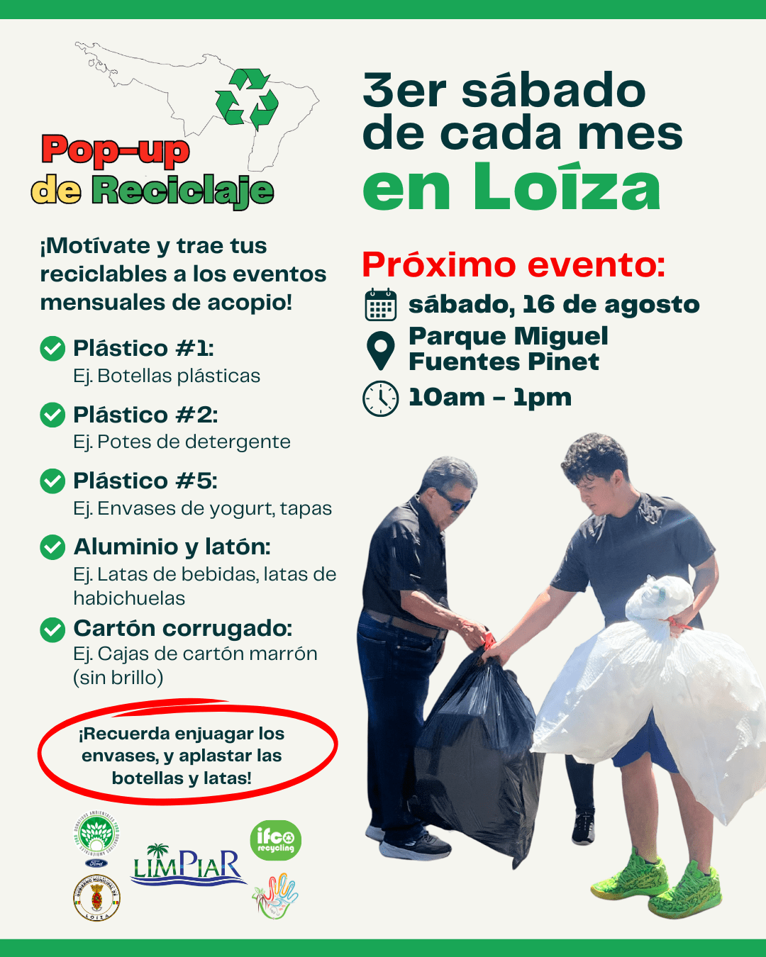 El sábado, 16 de agosto LimPiaR regresa a Loíza con su próximo Pop-up de Reciclaje.
