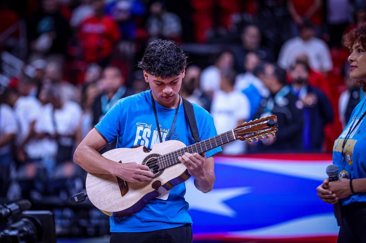 La presentación este pasado domingo incluyó al cuatro puertorriqueño y la voz de una joven sanjuanera, quienes enamoraron al público con una emotiva interpretación que recibió una ovación de pie en el Coliseo Roberto Clemente. Ambos vistieron la camiseta oficial del programa “San Juan es mi Residencia”, simbolizando el compromiso de esta iniciativa con la proyección cultural y juvenil de la ciudad capital.
